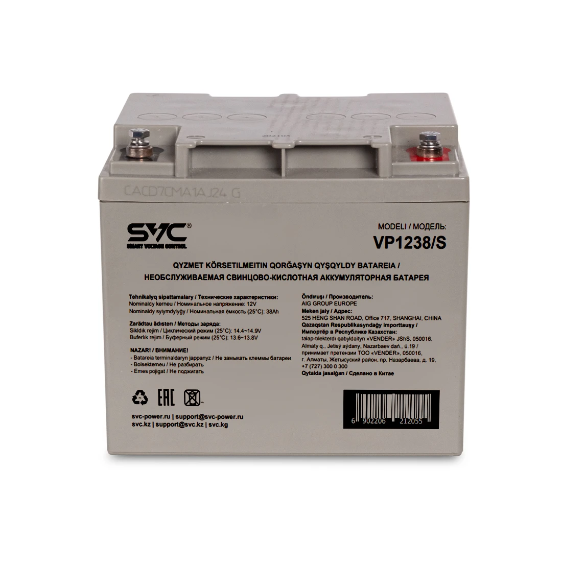 Батарея, SVC Свинцово кислотная 12В 38 Ач, Размер 195*165*178 мм (VP1238/S)